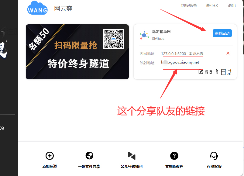 然后登录,点击启动,然后把链接发给要分享的队友